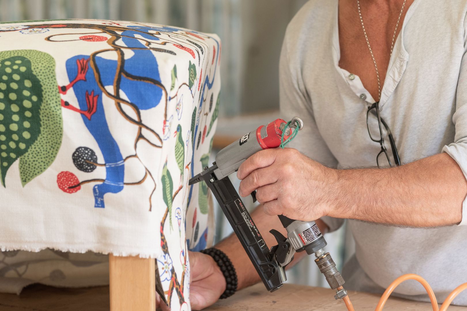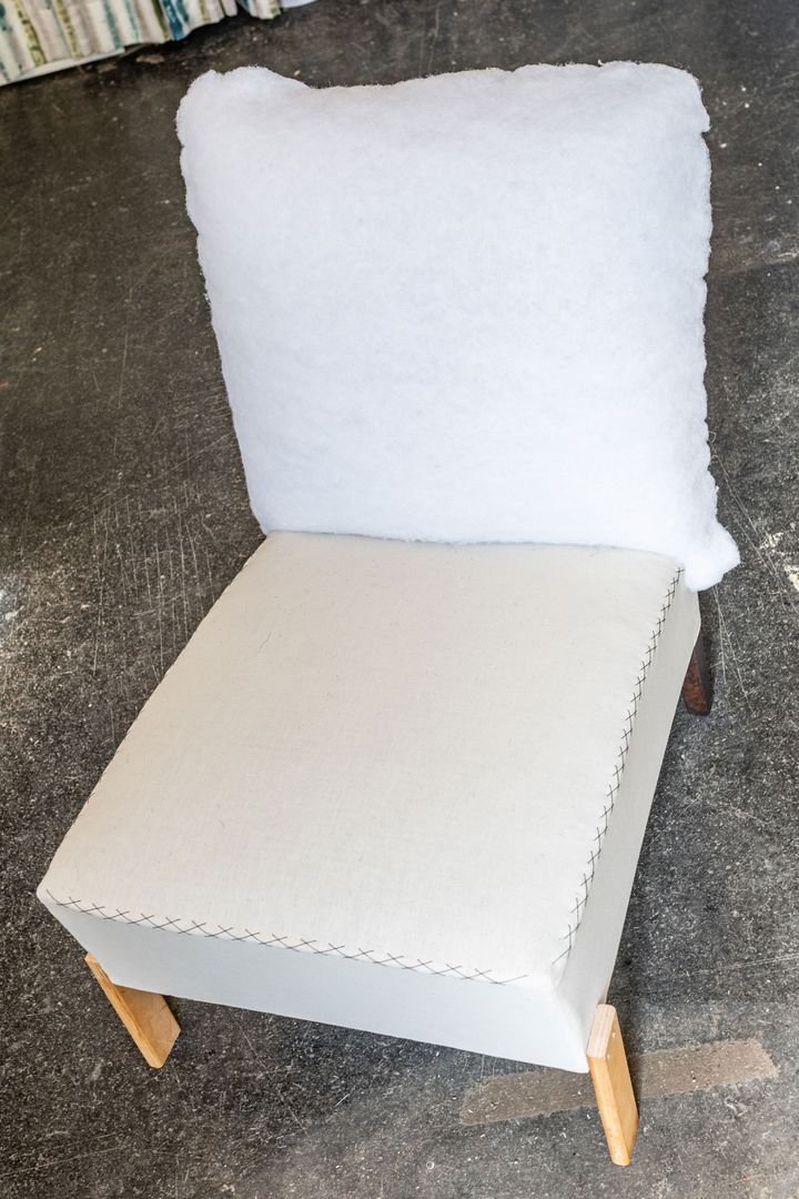 Bevor es losgeht, muss die Polsterung erneuert oder zumindest aufgefrischt werden. Moderne Polsterungen werden aus FCKW-freien Schaumstoffen mit Federkern oder Latex bzw. aus Kaltschaum hergestellt. Dabei bestimmen Drahtstärke, Anzahl und Höhe der Federn den Sitzkomfort und die Haltbarkeit der Unterfederung. Oft werden dafür Gummigurte, Federholzleisten oder Flachfedern verwendet. Als Alternativen kommen auch klassische Materialien wie Palmfaser, Kokosfaser oder Rosshaar infrage.