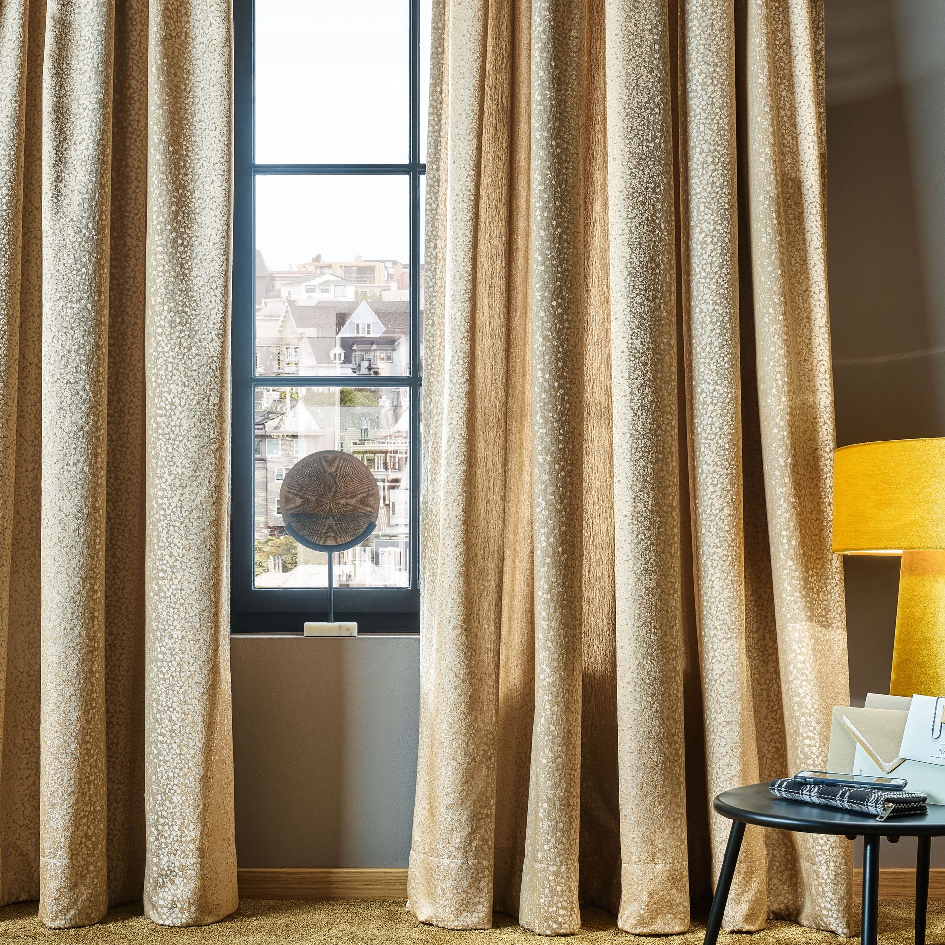 Raumhohe Vorhänge schweben entweder knapp über dem Boden oder liegen auf. Die schwebende Variante lässt sich besser sauber halten. Die aufliegende Gardine gibt einem Raum einen lässigen Chic, ist aber beim Staubsaugen oder Wischen unpraktisch.